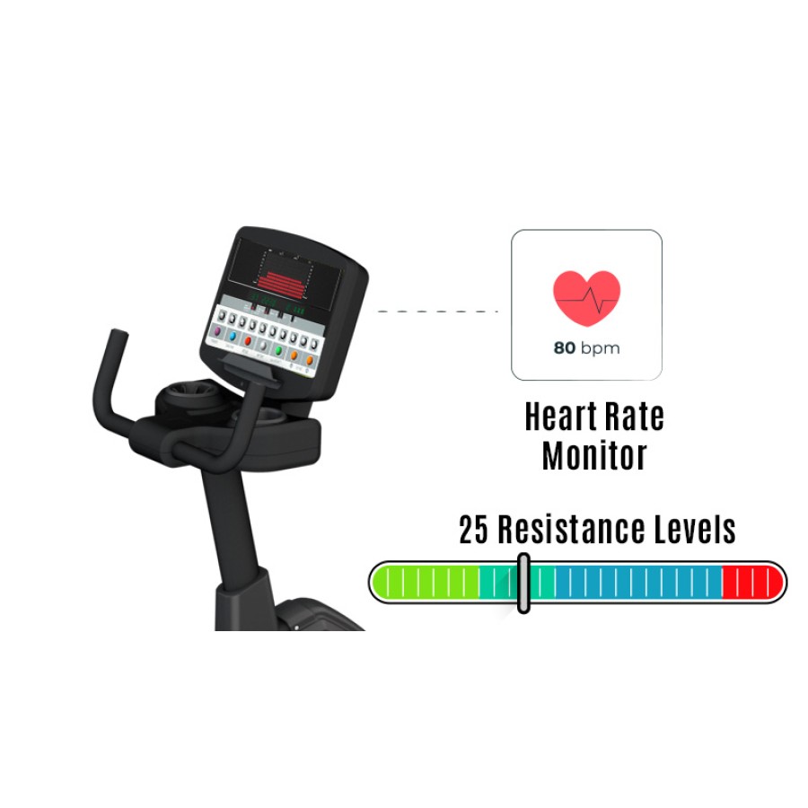 Now measuring your heart rate becomes more convenient by contact with the handlebar. 25 resistant levels will make your workout more effective and you can adjust them easily on the monitor