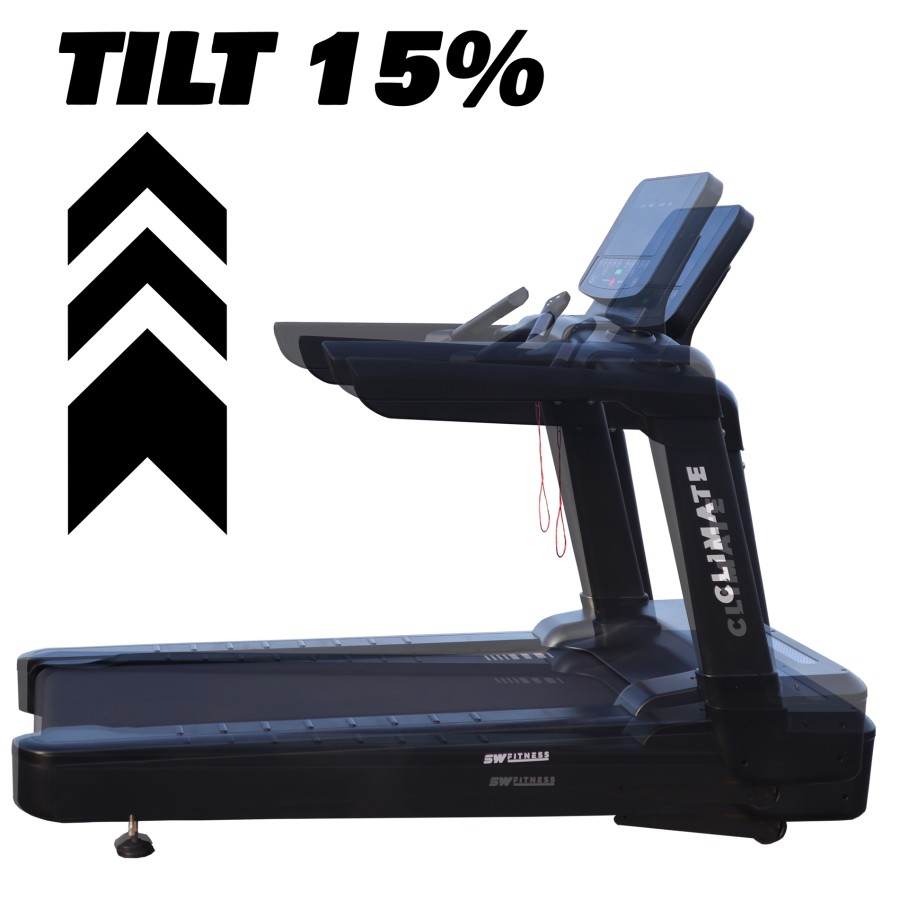 Step up your fitness game with the Southern Fitness CLIMATE 8001 Treadmill. Featuring a 15% incline, heart rate monitor, and ergonomic joystick controls for speed and incline adjustments, this treadmill ensures a superior workout experience. Its composite running belt offers low friction and noise, while the double shock-absorbing system with a durable urea resin top layer provides optimal comfort and durability. Experience innovation and performance with every run.