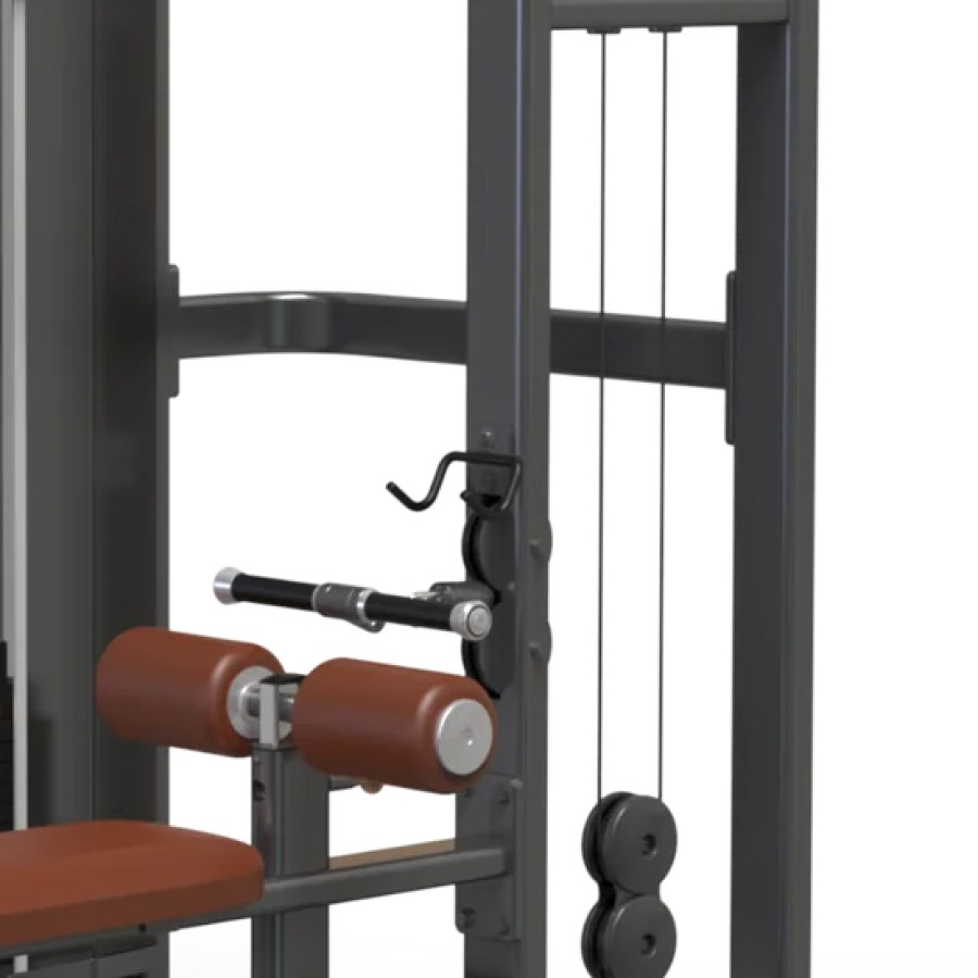 Space-saving design offers two exercises in one piece of equipment - Pull Down and Seated Row